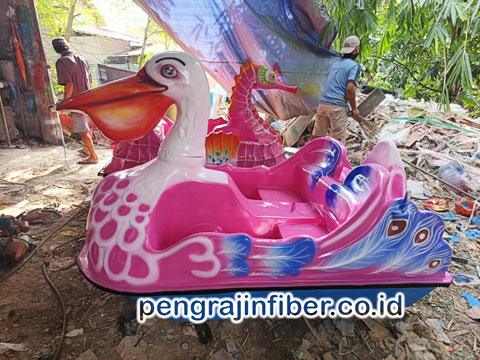 Sepeda Bebek Air Fiberglass Model Pelikan Pink merupakan wahana rekreasi air dengan desain karakter pelikan berwarna pink yang unik, cerah, dan menarik perhatian. Tampilan visual yang lucu dan estetik menjadikan produk ini sebagai daya tarik utama di kolam renang, danau wisata, maupun area rekreasi keluarga. Material fiberglass berkualitas tinggi mendukung kekuatan struktur sehingga ketahanan pemakaian jangka panjang tetap terjaga.