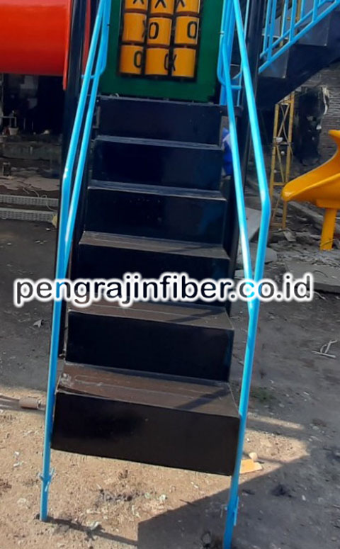 Tangga Fiberglass merupakan akses naik menuju perosotan atau wahana permainan anak menggunakan material fiberglass tebal serta rangka kuat sehingga keamanan penggunaan lebih maksimal pada playground indoor maupun outdoor.